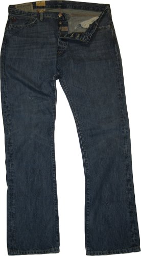 - Five-pocket jean styling with signature metal rivets. Embroidered "RL" at right front pocket.