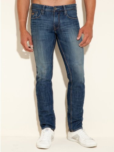 Get the classic denim feel with a modern slim fit in these laid-back straight leg jeans. ? Low rise ? Slim fit ? Straight leg ? Five pocket construction ? Belt loops ? Zip fly ? 10" front rise ? 14 ¼" back rise ? 16" leg opening ? 32" inseam ? 100% Cotton ? Machine wash Measurements taken from a size 32 WALKER WASH: The Walker wash is on high-quality indigo denim from Turkey. This medium-weight comfort stretch fabric is made with a blend of cotton and polyester. The subtle sheen of the fabric is mixed with a vintage wash aesthetic through hand creased 3-D whiskers, hand sanding, a potassium spray and a stone wash. The wash results in a rich bright shade of indigo for casual jeans that are versatile and easy to wear. Men > Denim > Basic Denim** CERTAIN CONTENT THAT APPEARS THIS SITE COMES FROM AMAZON SERVICES LLC. THIS CONTENT IS PROVIDED ‘AS IS’ AND IS SUBJECT TO CHANGE OR REMOVAL AT ANY TIME.